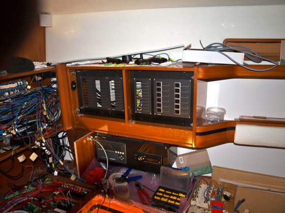 Der Eigner möchte etwas aufrüsten, so bekommt er Plotter für innen und außen, Funkanlage, Shunt mit Batterieanzeige, Radar- Transponder, AIS- Transponder, Autopilot, usw.